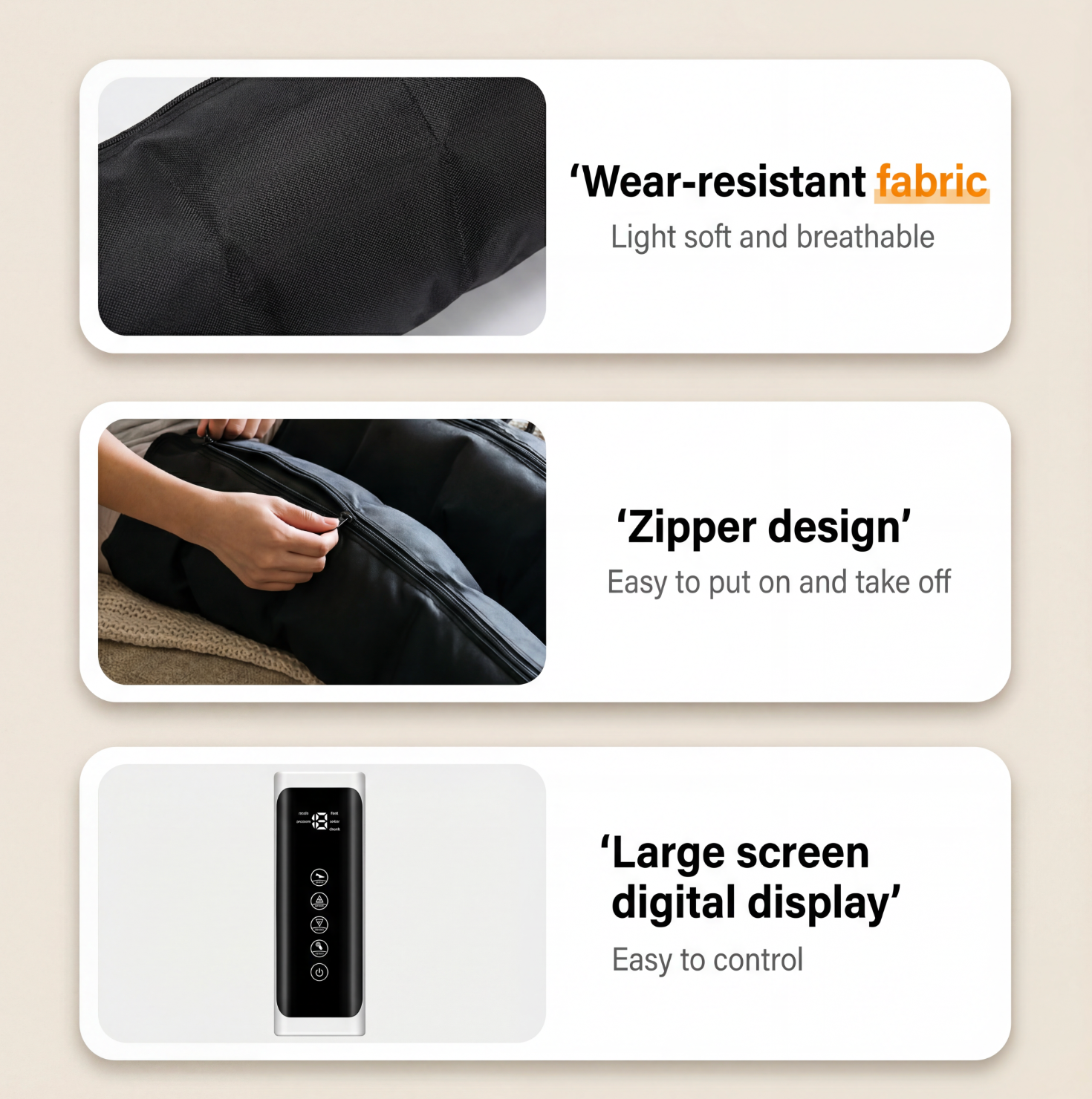 Masseurul de Compresie Vogany îți învăluie picioarele, gambele și coapsele într-o compresie de 360° pentru a stimula circulația și a elimina senzația de picioare grele.